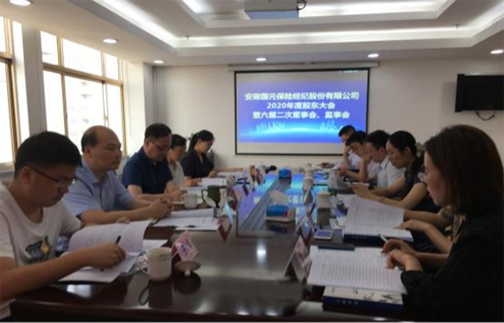 2021年7月30日下午,安徽國元保險經紀股份有限公司2020年度股東大會暨六屆二次董事會、監事會在合肥召開。會議由董事長查鏡欽主持,國元資本總會計師錢軍及其他各位股東代表、董事、監事參加會議,公司高管人員列席會議。