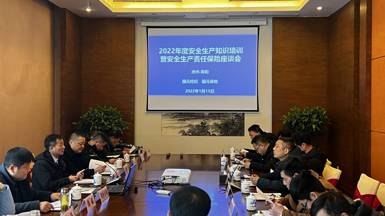 近日,國元保險經紀池州分公司在池州市青陽縣組織召開2022年度安全生產知識培訓暨安全生產責任保險座談會,會議邀請到了縣應急局、縣住建局及14個鄉鎮安全監管工作部門主要領導。