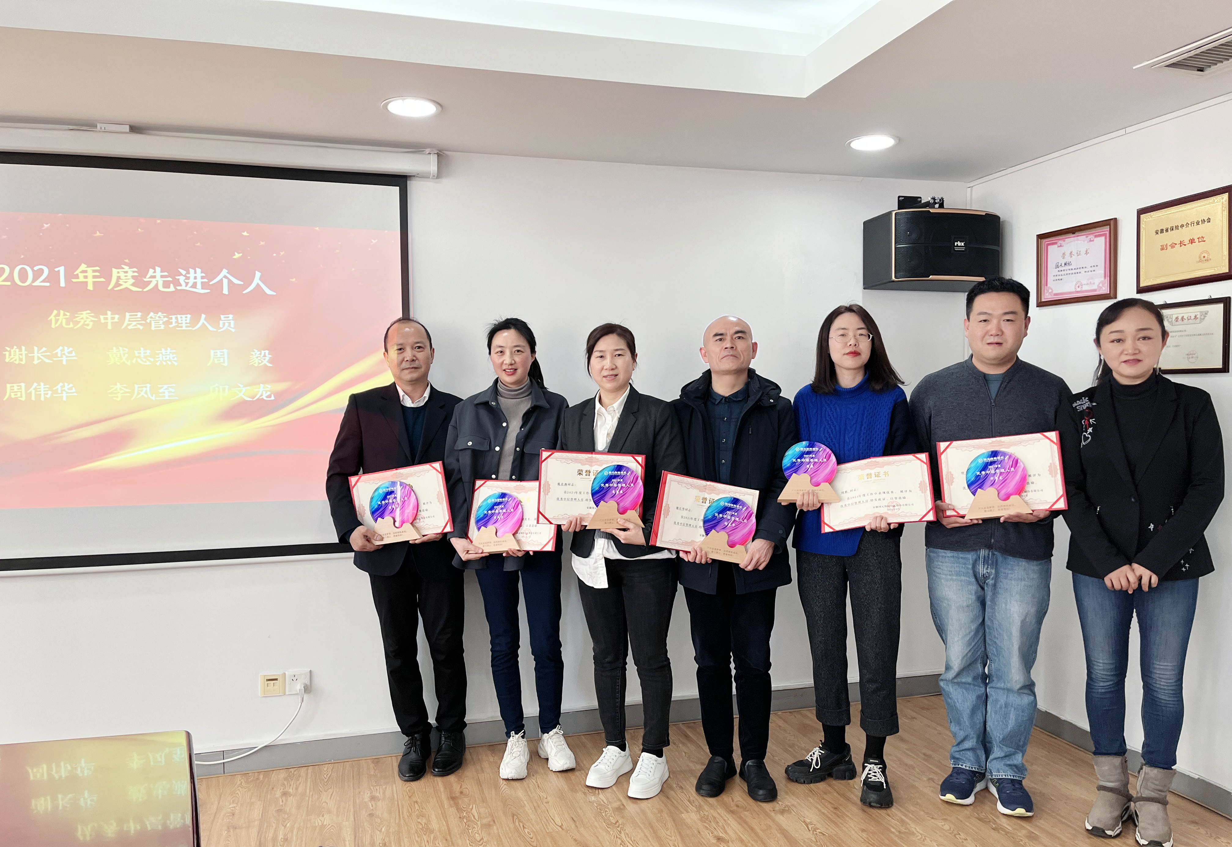 簽約結束后,總經理潘惠、總經理助理戴忠燕對榮獲2021年度先進集體獎、先進個人獎、特別貢獻獎、機構聯動獎的先進集體代表和個人進行了表彰、頒獎并合影留念,“先進集體”和“先進個人”代表作交流發言。