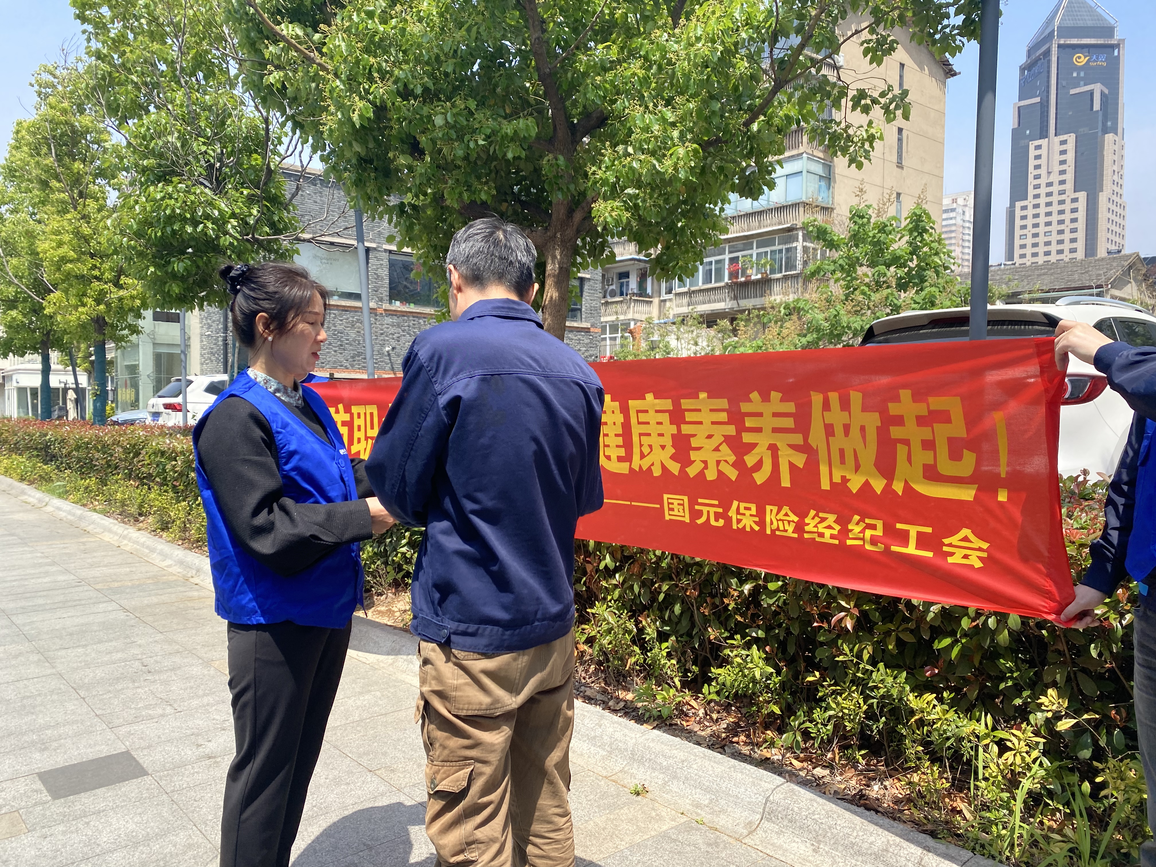 國元保險經紀工會組織公司員工走上街道,向群眾普及《職業病宣傳法》相關知識,對職業病預防、職業病危害因素定期檢測和職業病防護設施評價、勞動者個體防護、勞動合同簽訂和職業病危害告知、工傷保險政策等有關法律法規進行了宣傳科普,讓廣大群眾更進一步了解職業病相關知識。